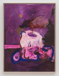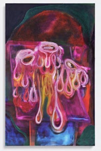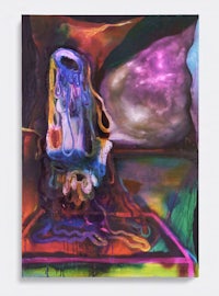 Oil, alcohol ink, flocking, glass beads on panel in artist frame