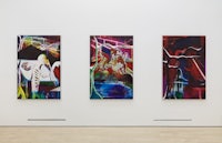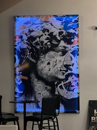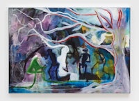 Oil, alcohol ink, flocking, glass beads on panel in artist frame
